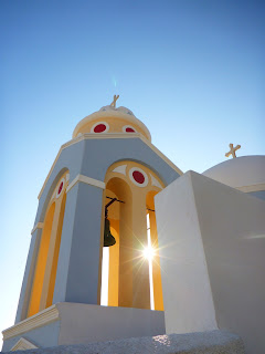 Un très beau mais trop court séjour sur Santorini. Les innombrables séismes et les éruptions volcaniques qui se sont succédés depuis le début des temps ont grandement modifié sa géographie. Cette île qui à l’origine s’appelait Strongoli (la Ronde) n’a plus que la vague forme d’un croissant. Il y a 3 500 ans une nième éruption volcanique engloutit dans la mer le centre de l’île ne laissant que la caldeira qu'on voit encore aujourd'hui et sur laquelle on aime tant se promener. Les nombreuses catastrophes naturelles ont fait de Santorini un site exceptionnel, mais malheureusement surexploitées par les humains que nous sommes. N'empêche que la beauté grandiose du paysage nous surprend à chaque nouveau tournant que nous offre la ballade sur la caldeira.